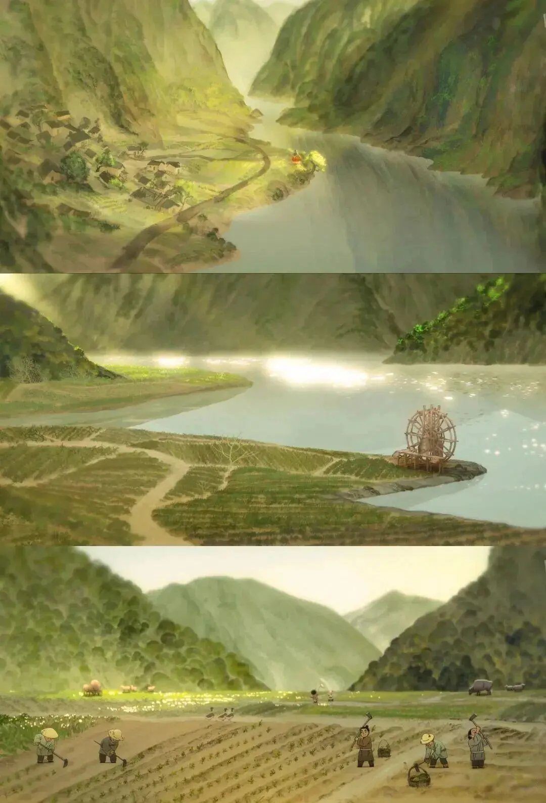 可三条小蛇没有呼风唤雨的本领,最后能想到的办法竟是让其中一条长蛇的身体当扁担,然后另外两条蛇一趟趟从山涧挑水,浇灌。被村民发现后误会它们是妖怪,朝它们扔石头,它们也只是擦擦伤口,第二天继续挑。