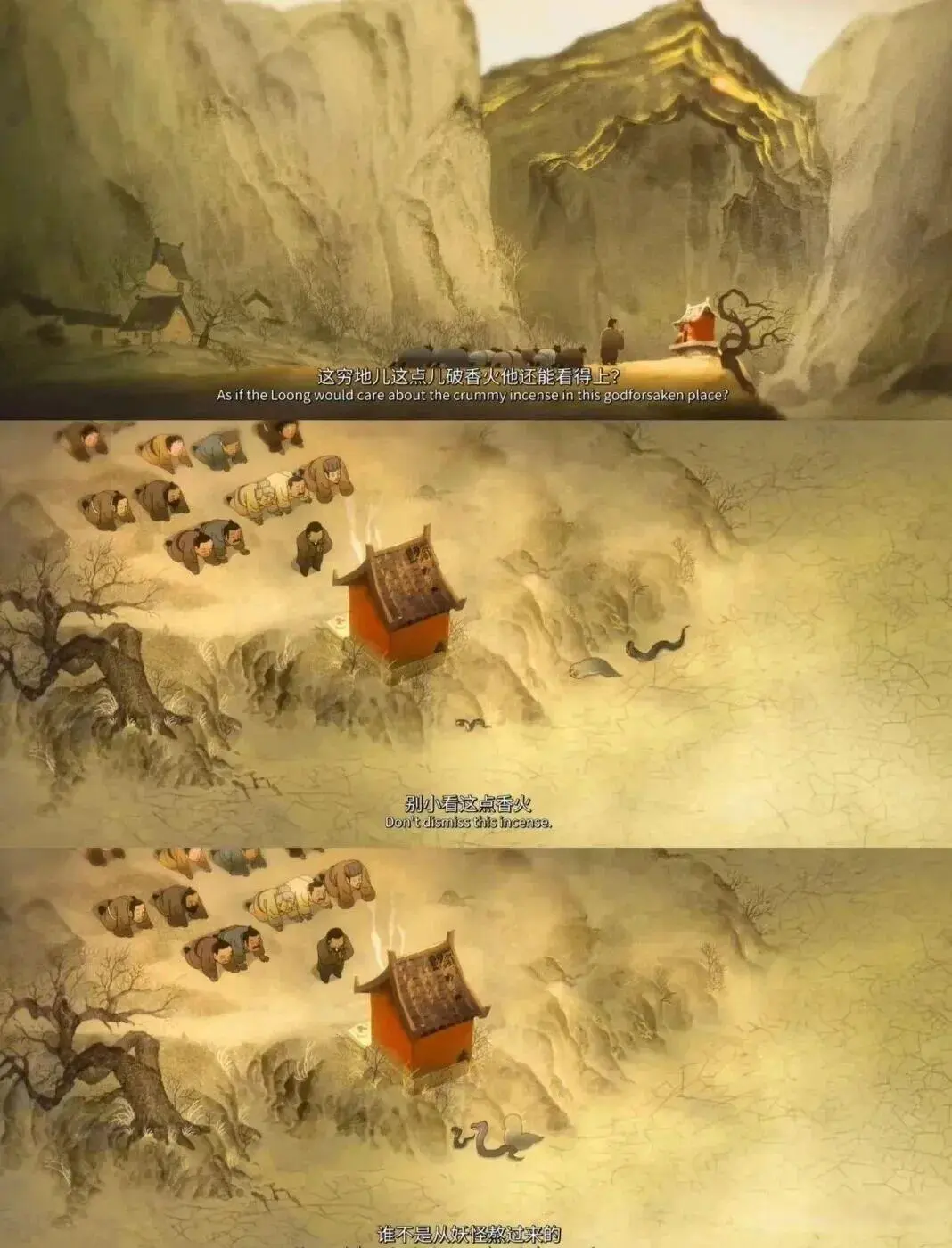 它们是“草台班子”追梦组,没有后台,一门心思想“成仙”。吸收香火,假冒龙王,但深知想要获得更多香火,就要造福人群,哪怕没有行雨法术,也要坚持夜间从远处汲水、挑水,亲自浇地。